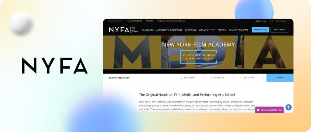 - Located in New York City, one of the world’s film industry centers, offering many internship and work opportunities.